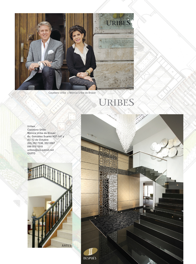 Uribes DECORACIÓN & INTERIORISMO 2014 Uribes Cayetano Uribe Mónica Uribe de Brauer Av. González Suarez N27-147 y Av. 12 de Octubre (02) 252 7336, 252 8567 099 970 1510 uribes@uio.satnet.net QUITO