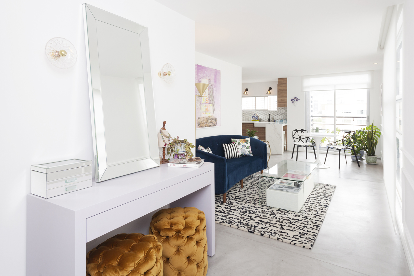 No le teme a los retos, no le asustan las tendencias ni las modas, las usa y aprovecha, y cuando hay que cambiarlas, las cambia tan rápido como el color de su pelo. Ella, a sus cortos treinta y pocos, ha creado su hogar con una personalidad arrolladora. Pensé que sus áreas íntimas y personales son la mejor carta de presentación para una diseñadora de interiores, y aquí estoy. No había visto su trabajo completo, pero con esta primera impresión supe que estaba frente a una gran profesional.