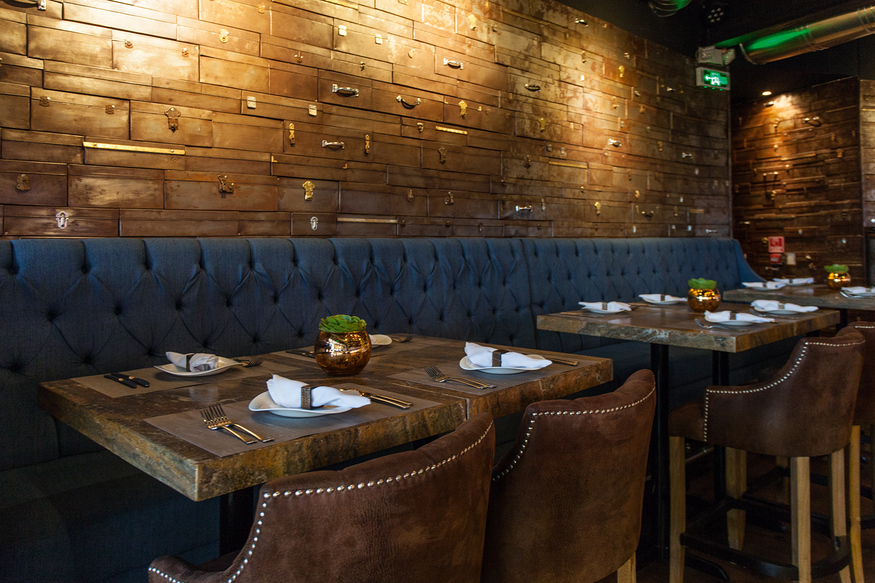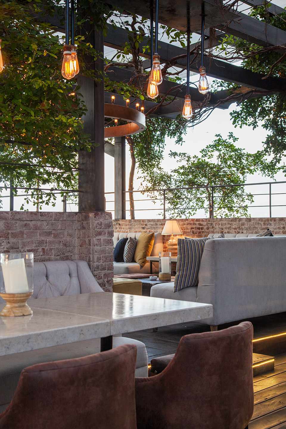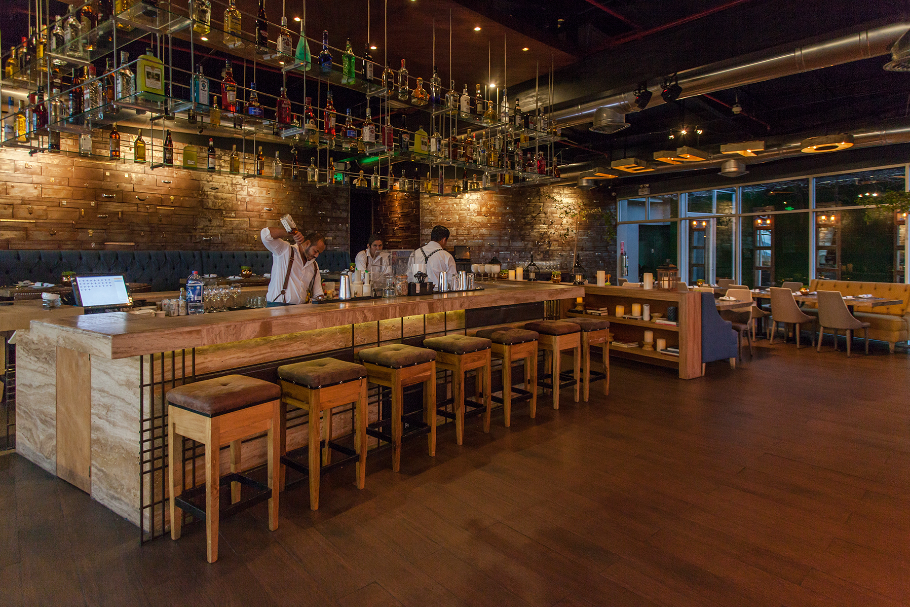 También agrega que “Antuco Plaza – decorador y socio – captó perfectamente la idea y nos impactó con este lugar que pone en evidencia una mezcla muy especial, donde la iluminación juega un factor importante”. La zona del restaurante es muy contemporánea pero cálida al mismo tiempo, mientras que “el área de la terraza, o rooftop, se asemeja a un bosque encantado con un ambiente cautivante que hace que los sentidos se pongan a flor de piel”. El lugar contempla una adecuada combinación entre lo moderno y lo rústico.