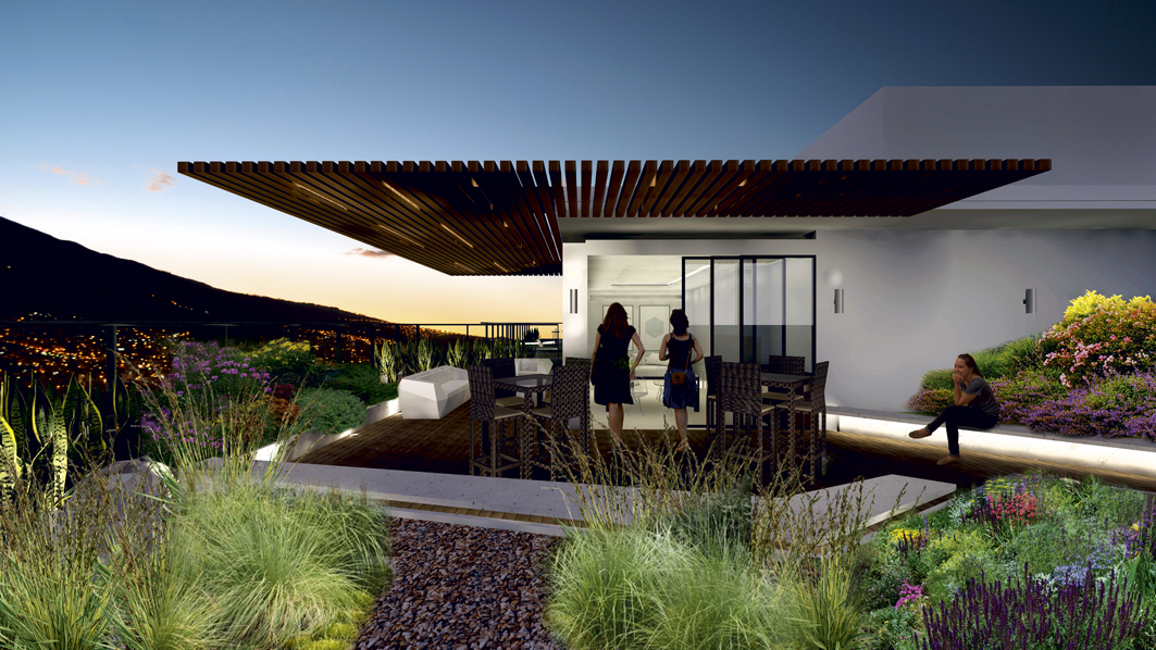 En la elaboración del proyecto se han implementado los postulados del SEA. Temas de reciclaje de aguas grises, regeneración de micro ecosistemas, posee jardines en altura con vegetación nativa para suelos, paredes y techos. En temas de confort trabajamos con la maximización de ventilación natural en los espacios. Es una edificación de uso mixto, con accesos independientes. El proyecto, de aproximadamente 18.000m2 de construcción, cuenta con 81 oficinas desde 50m2 a 110m2; y 31 departamentos de 1,2,3 y 4 habitaciones entre 52m2 y 140m2. Tanto la torre de oficinas como la de departamentos cuentan con áreas verdes, algunas en planta baja y otras en las terrazas de los pisos superiores. Adicionalmente posee 5 locales comerciales en planta baja, y en los subsuelos se distribuyen estacionamientos tanto vehiculares como para bicicletas, y bodegas.