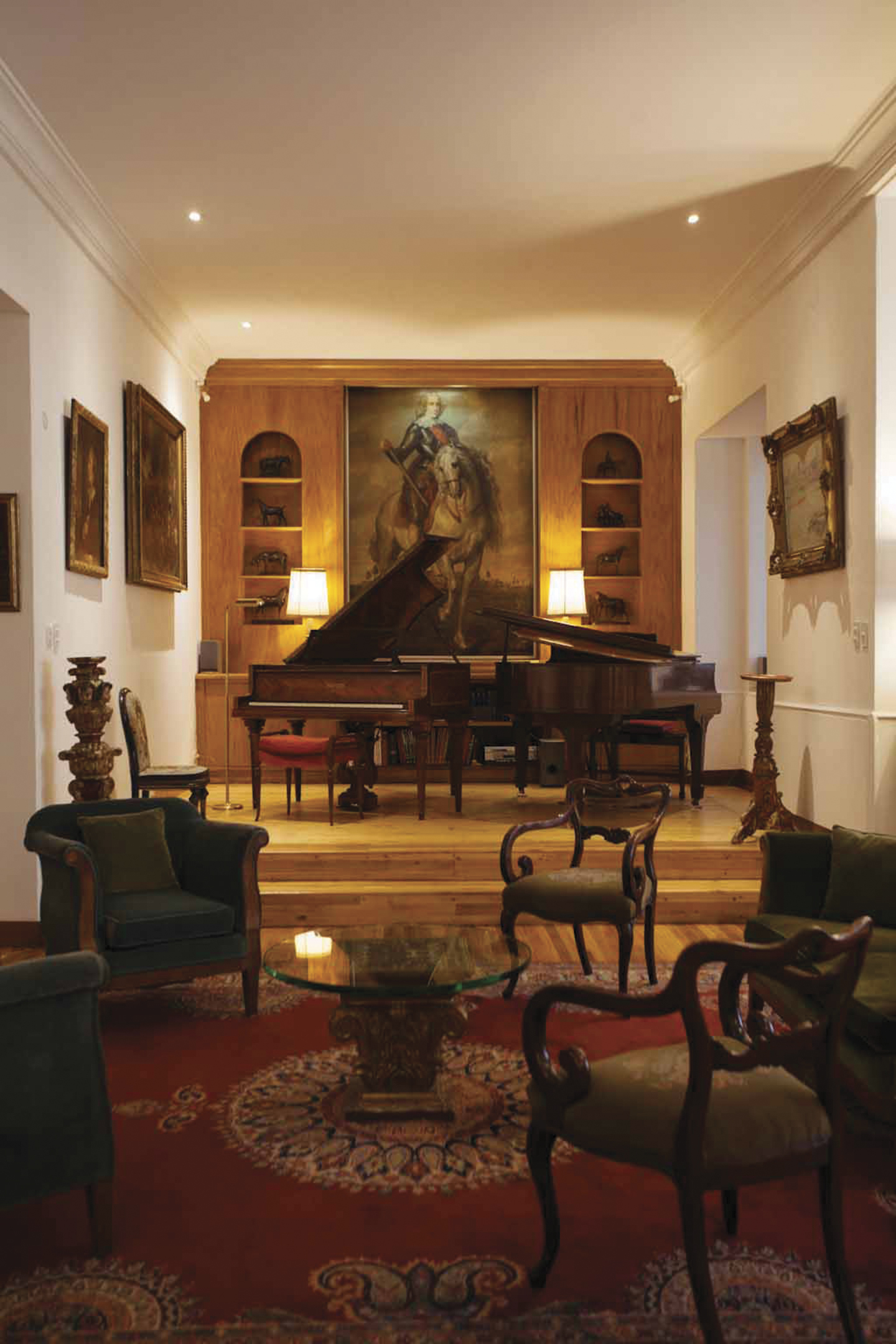 The invitation is set to live a great experience filled with ancient memories that begin with a walk through every corner of the house that is perfectly decorated, as its last owner left it. The main hall holds art pieces of the Escuela Quiteña and others from Europe, paintings by the Uruguayan Pedro Figari, and a breathtaking Pleyel grand piano with ivory keys. The furniture is reminiscent to the sobriety of French style of the last century. The recital hall holds other pianos, including a studio piano that is a rare piece at this time.